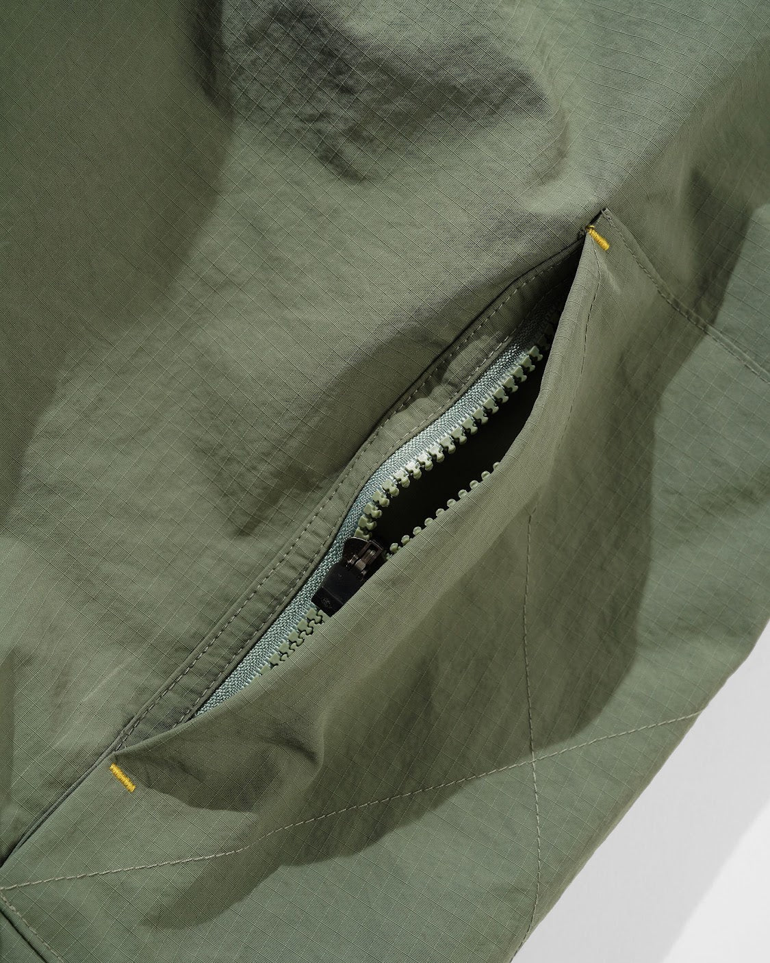 Bolsillo de parche con cierre de cremallera en la pierna izquierda