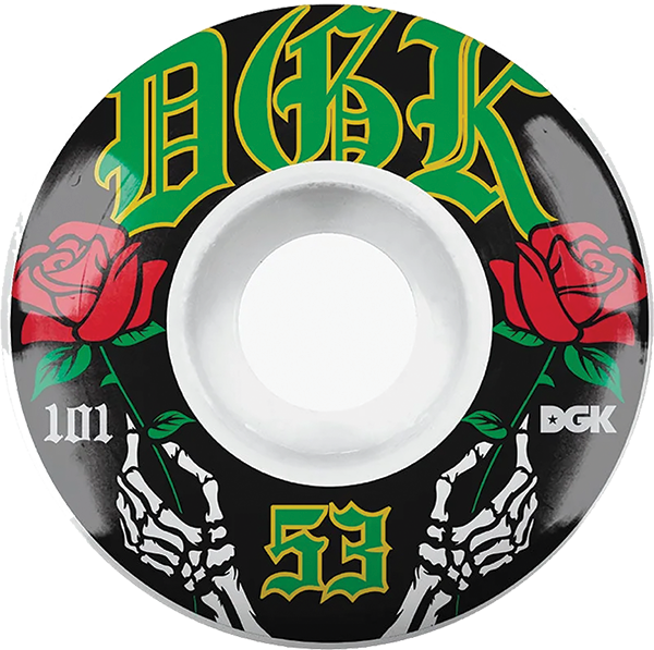 Creadas por Dirty Ghetto Kids Skateboards en un elegante color blanco, las ruedas de skateboard Immortal miden 53 mm de diámetro y su durómetro de 101a ofrece un rendimiento ágil y urbano. Adornadas con imágenes impresas en los flancos, las ruedas Immortal presentan un acrónimo en negrita en una fuente Old English, mientras que un par de manos esqueléticas sostienen rosas para una apariencia devota y fugaz.