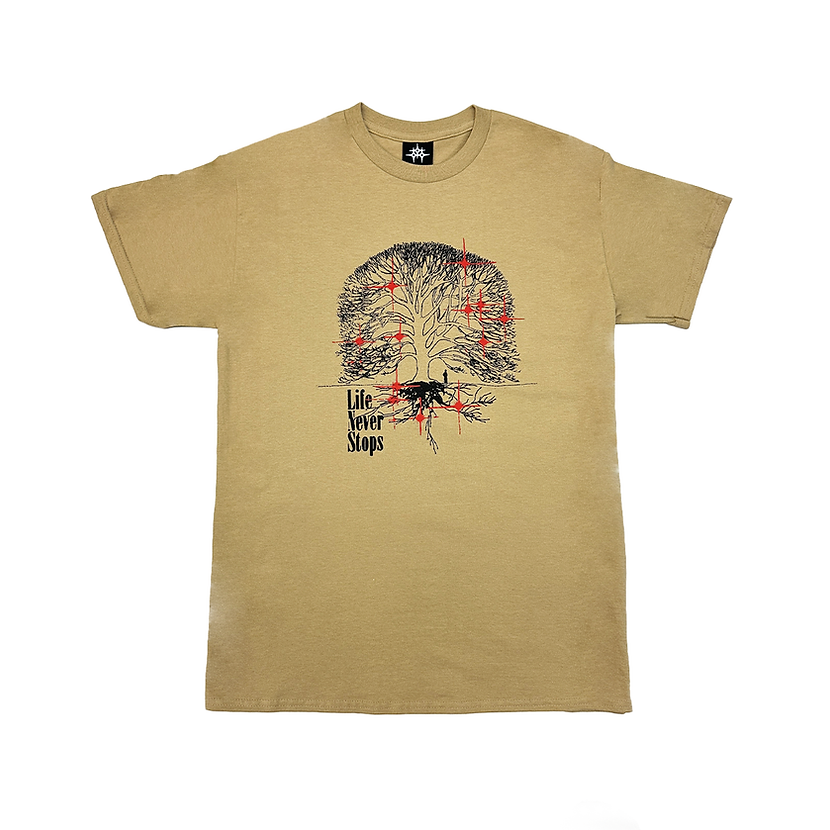 Camiseta Late Nite Stars, camiseta LifeNeverStops, marrón y roja