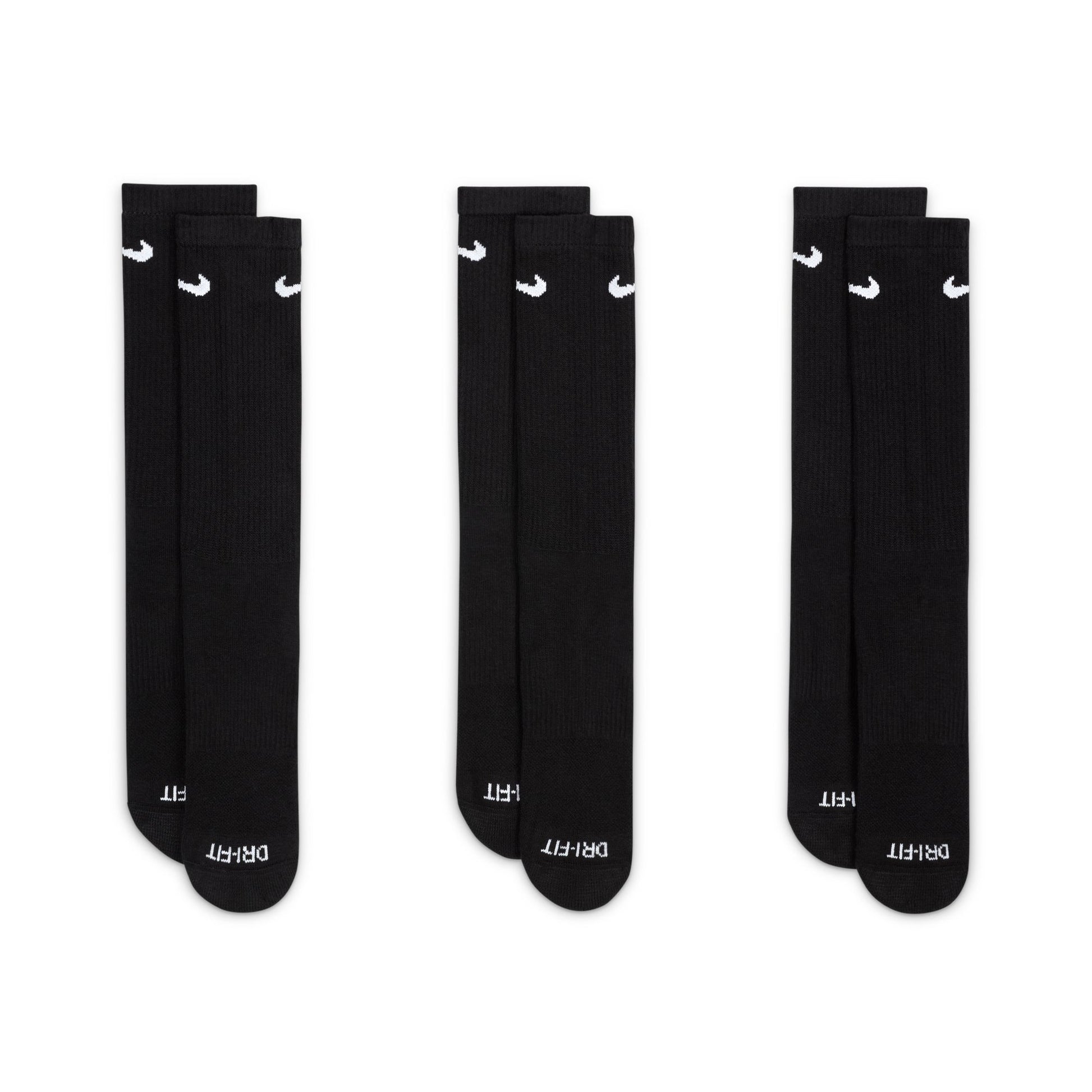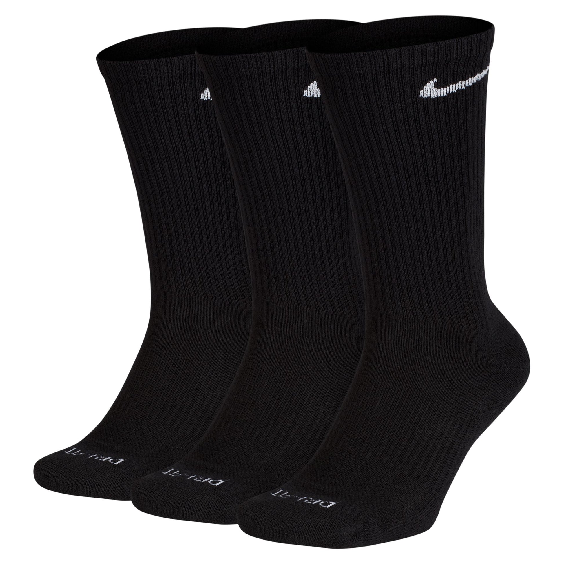 Calcetines Nike Everyday Plus Cushioned Training (3 pares) COMODIDAD Y SOPORTE. Los calcetines Nike Everyday Plus Cushioned aportan comodidad a tu entrenamiento con amortiguación adicional en el talón y el antepié, y una banda de arco ceñida y con soporte. La absorción del sudor y la transpirabilidad en la parte superior mantienen los pies secos y frescos para que puedas seguir adelante con esa serie extra. La amortiguación en el antepié y el talón suaviza el impacto del entrenamiento. La tecnología Dri-FIT mantiene los pies secos y cómodos. La banda alrededor del arco se siente cómoda y ofrece soporte. El patrón de punto transpirable en la parte superior proporciona ventilación. El talón y la puntera reforzados están hechos para durar. Más detalles