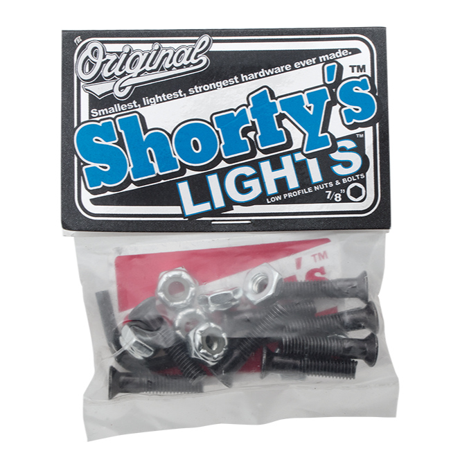 Con los herrajes Allen de Shorty, acertarás seguro. Incluye un juego de 8 tornillos negros y tuercas plateadas. Los tornillos Shorty tienen cabezas más pequeñas para reducir la tensión en la tabla y el peso. La mitad superior no tiene rosca para mayor resistencia. Incluye llave Allen y una pegatina.