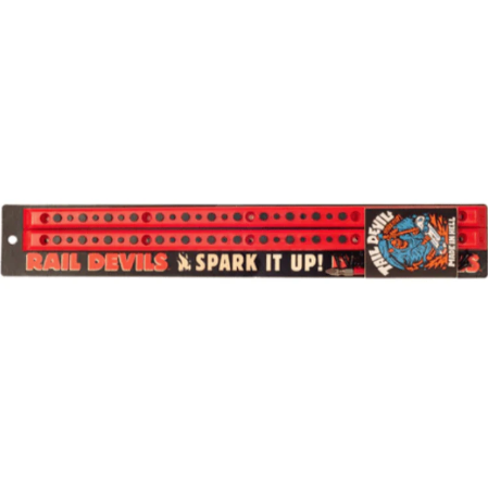 ¡Empieza a brillar con los Rail Devils! 28 cilindros de pedernal que producen chispas están infundidos en la cara de cada Rail Devil. Distribuidos uniformemente por toda la superficie de deslizamiento para maximizar las chispas en cualquier variación de slide trick. ¡Haz un lipslide, un boardslide o un smith grind bien sumergido y observa cómo saltan las chispas! Luce genial de noche.